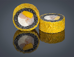 Лосось, черная икра тобико, манго, авокадо, творожный сыр Cremette Professinal, манго соус.