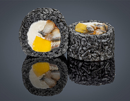 Чернила каракатицы, угорь(допускается попадание мелких костей), авокадо, Чёрная икра тобико, творожный сыр Cremette Professional.