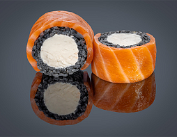 Чёрная икра тобико, лосось, огурчик, творожный сыр Cremette Professional.