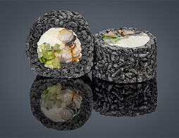 Чернила каракатицы, угорь(допускается попадание мелких костей), огурчик, белый кунжут, творожный сыр Cremette Professional.